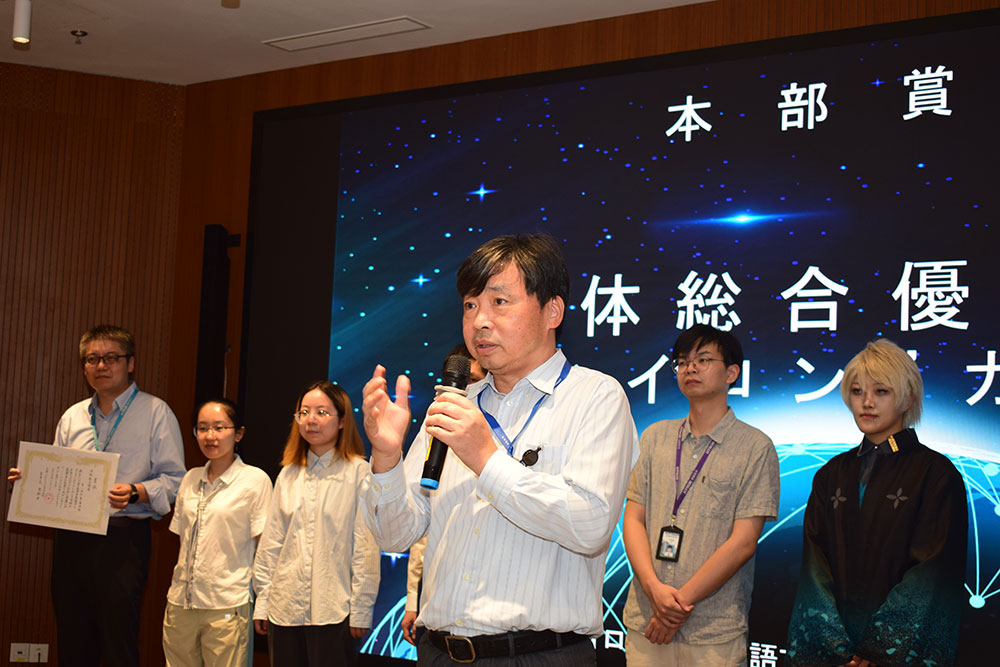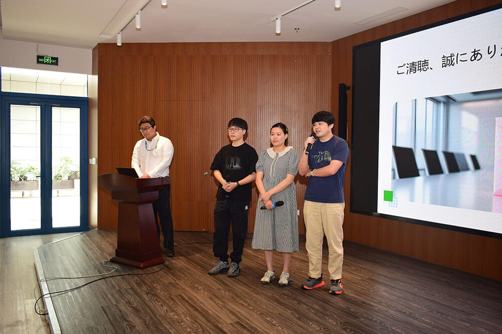 本次活动分为两大板块。第一部分为日语演讲比赛,各部门派出代表队,演讲主题自由选择,其中日本经济安保法、AI技术应用等依旧是今年的热门话题。通过激烈角逐,第三海外事业本部的林啸摘得个人赛冠军,第一海外事业本部同时获得团体赛冠军及团体综合冠军。